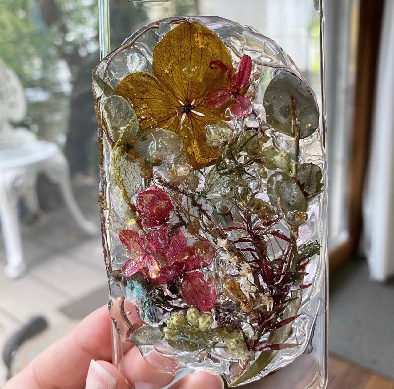 ドライフラワーを埋め込んだiPhoneケースです。