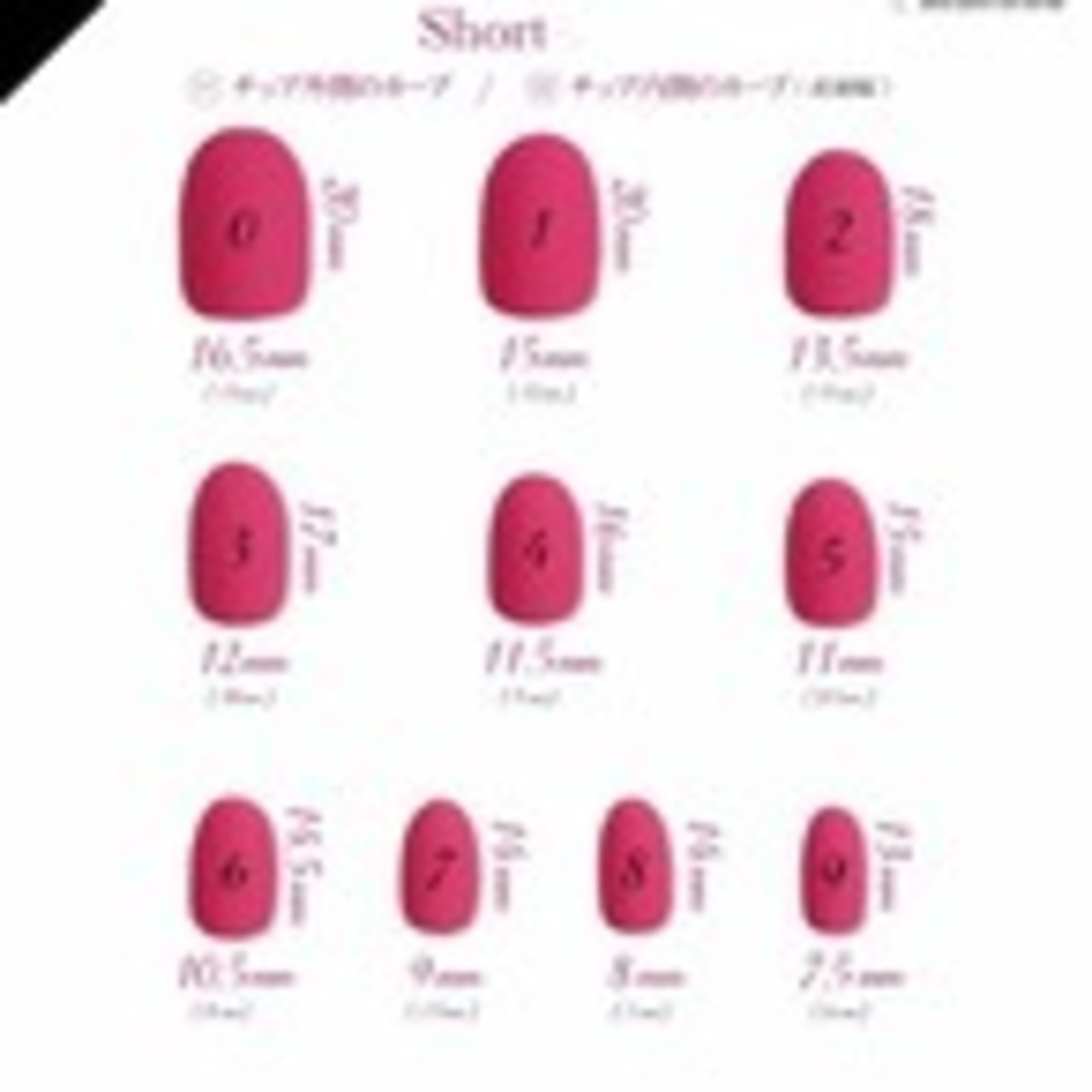 ベリーショート、ショート、オーバル、ショートスクエアからお好みの爪のパターンをひとつお選び頂きます。